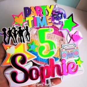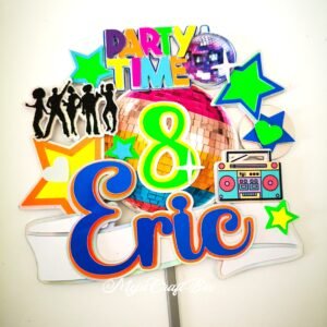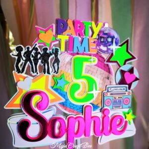 Disco Dancers Neon cake topper, 3D retro cake decoration , Disco party cake topper, Disco party